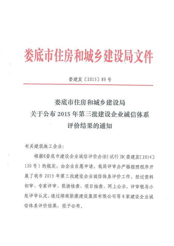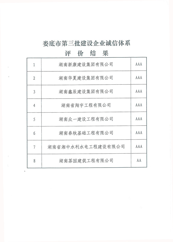 公司通过娄底市2015年企业诚信体系评价AAA级单位